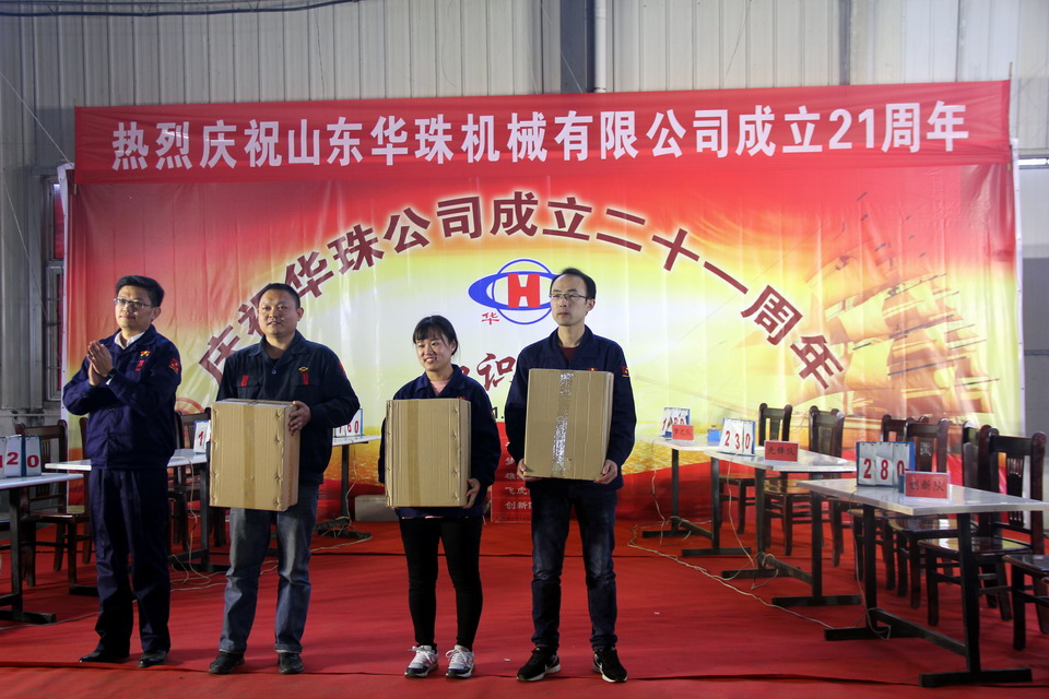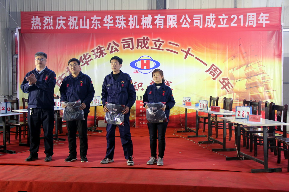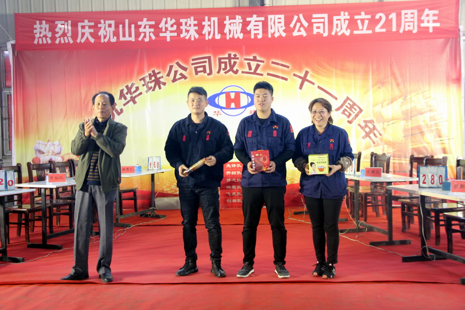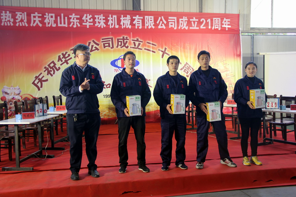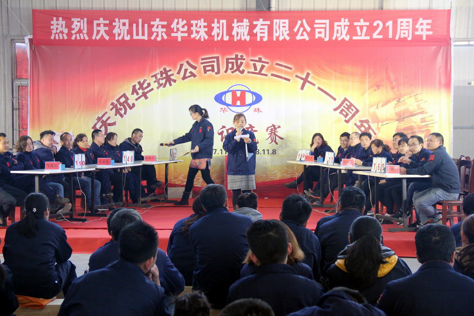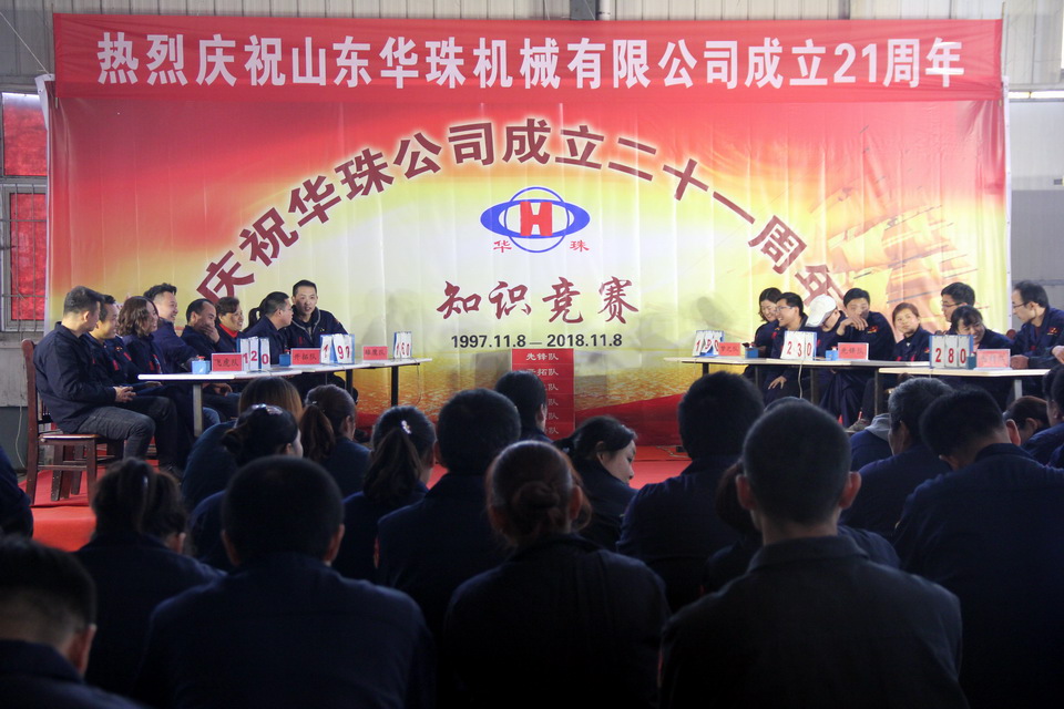 2018年11月10日,華珠公司成立21周年慶典系列活動(dòng)在曲阜公司舉行,第18屆秋季運(yùn)動(dòng)會(huì),中午為全體員工準(zhǔn)備了豐盛自助餐,下午舉行了知識(shí)競(jìng)賽和頒獎(jiǎng)活動(dòng)。華珠公司200余名員工歡聚一堂,踴躍參加,氣氛熱烈,精彩場(chǎng)面層出不窮;知識(shí)競(jìng)賽全員參與,中間穿插精彩的“心有靈犀”小活動(dòng),將廠慶的氣氛推向高潮!